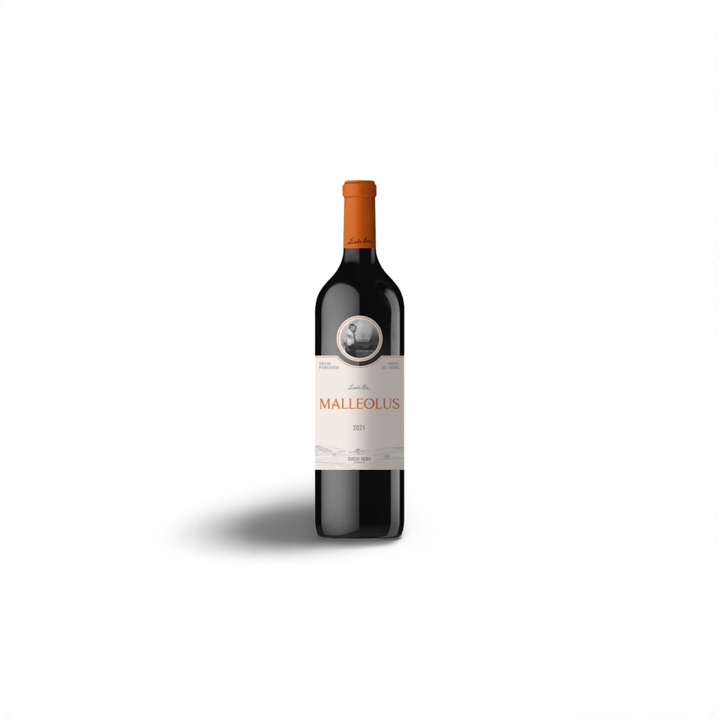 Malleolus 2021 es un vino tinto de la D.O. Ribera del Duero elaborado por Bodegas Emilio Moro con 100% Tinto Fino (Tempranillo) de viñedos seleccionados. Criado durante 18 meses en barricas de roble francés, combina intensidad, complejidad y equilibrio. En nariz, ofrece aromas de frutas negras maduras, especias, cacao y sutiles notas balsámicas. En boca, es estructurado, con taninos sedosos, acidez vibrante y un final largo y persistente. Perfecto para maridar con carnes rojas, caza y quesos curados, Malleolus 2021 es un referente de la Ribera del Duero con gran capacidad de envejecimiento.